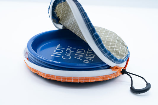 始まりはゴールゼロの直視した時の眩しさが少し強く感じたことから始まりました。この眩しさを少し軽減できればいいな。そんな誰もが思ったであろう事を、何があればクリアできるのかをひたすらに妄想しました。光と人間の間に一枚布があれば少し軽減されらるのか、、色んな想像を巡らせ、ゴールゼロに合うシェードを作る事にしました。作ると言っても簡単では無い。ミシンをまともに扱った事がなかった自分は、まずボビンはどうやって巻くのか、どんな針を使えば?、どんな糸を使えばいいの?全てが手探りの状態でありました。家庭科の勉強のような事から始まり、少しずつミシンに慣れていく。ミシンの基礎がない内は、縫う作業自体がままならず、糸がよれたり、強度が出なかったり、、何事も基礎が大事だという事は、今まで色んなカルチャーに触れながら痛いほど分かっていただけに、手を抜けませんでした。オーリーが下手なキックフリップなど見るに堪えないから。ミシンに慣れる作業とシェードの妄想を繰り返す内に、下手なラフ絵を完成させ、寸法を計算し、これを作ってみよう!と言うところまではいった。あとはファブリック(生地)をどうしようか。やっぱり光を使うなら、光を活かせるものがいい。アウトドアファブリックを探し回り、これだ!と言うものを見つけます。昨今色んなブランドで使われているXPACである。XPACとは3層構造からなるファブリックで、強度、軽さ、防水性を併せ持つ、アウトドアの為に生まれたような生地であります。また特徴としてXに格子状の柄が入っている。この上柄がゴールゼロの光によって、より強く浮かび上がったらカッコいいんではないか?と思い、シェードのボディをXPACに決めました。次に決めるのは、強い光を少し和らげる部分。ここで求められるのは、光を完全にシャットアウトする事ではなく、光を柔らかい光に変えること。その為には光をより透過させる必要がありました。薄いナイロンを選べばいいかな?そんな事を考えながら30Dのナイロンを買ったところ、ナイロンが滑りうまく縫えない。端がすぐにほつれる、、紆余曲折ありながら、シルナイロンにたどり着きました。答えはネットにいっぱい転がっている中、実際に触れてみないと納得がいかない部分が多くありました。でも失敗達は、今スキルの土台となって自分を支えてくれています。これでファブリックが決まりました。あとは目指すゴールをどうするか。光をより透過したいから薄い方がいい、色々なところに持っていけるように軽量の方がいい、ゴールゼロと一緒に持ち運べた方がいい、そんな事がぼんやりと浮かびながら、少しずつ事を進めていきました。そして試行錯誤していく内に完成したのが今の形です。ただ今も進化の途中であり、1stロットとは、コードストッパーや全体のシェイプ、使うナイロン生地も変わりました。初めから100点を出せれば、、そんな事を思いながら今日もギアを妄想しています。