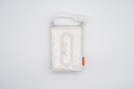 服が好きで高校時代電車に揺られ3時間ほどかけて東京に行った。裏原宿、渋谷には好きなブランドがいっぱい置いてあり、hectic.masterpiece.back channelやnitraidなど。BBCやICE CREAMも再燃しapeの店には海外のバイヤーが並んでいて、その中でも1番を取ってしまった僕ら高校生は、バイヤーに舌打ちをされながら並んでいた事も懐かしい。AGITOで竜人に会ったのもいい思い出だ。そんないい思い出の中でも一番よく覚えているのは、各店舗でもらえるショッパーだ。各店舗でもらえるショップの袋には、店舗のロゴや、ブランドのロゴがプリントされており、高校生だった僕は家に帰っても捨てる事なく大事に使っていた。使っているうちにボロボロになって捨ててしまったが、物を大事にする根底には、カッコ良いや可愛いは必要不可欠なのかもしれない。サスティナブル、サスティナブルと嘆かれる時代。エコ素材を使う事も勿論だが、少し古くなったくらいでは捨てられない様な物を作ることも大事である。そんな事を根底に置きながら、あの時代の雰囲気を纏って今回は完成させました。ファブリックはdcf素材を使い、軽量に仕上がってます。dcfが出せる独特な風合い、透け感、そしてシワが増えるほどに経年変化していく見た目。このエコバックには使えば使うほど味が出てくる楽しみもあります。まず制作に取り掛かった時に、初めは隠しマチを使って、折り畳み易さに振り切り、そこに加えて収納時にバッグの様に見える作りにしました。確かに見た目はカッコいいのですが、折り目がつきやすいdcfに隠しマチは適しておらず展開に時間がかかってしまいエコバック用途だと使いづらい。収納の機構についても、伸び縮みしないdcfには適さずボツに。かっこいいだけでは上手くいかないなーとまた悩む。次に考えたのが紙袋タイプのショッパー。折り目に沿って畳みやすく、dcfも折り目がつきやすい為試してみた。完璧や。でもこれじゃあ、、初っ端から何も考えずに作れば出来そうなタイプのエコバックじゃんか、、、。と落胆しつつ、遠回りが1番の近道と言い聞かせ、その過程を箇条書きで成仏させる。