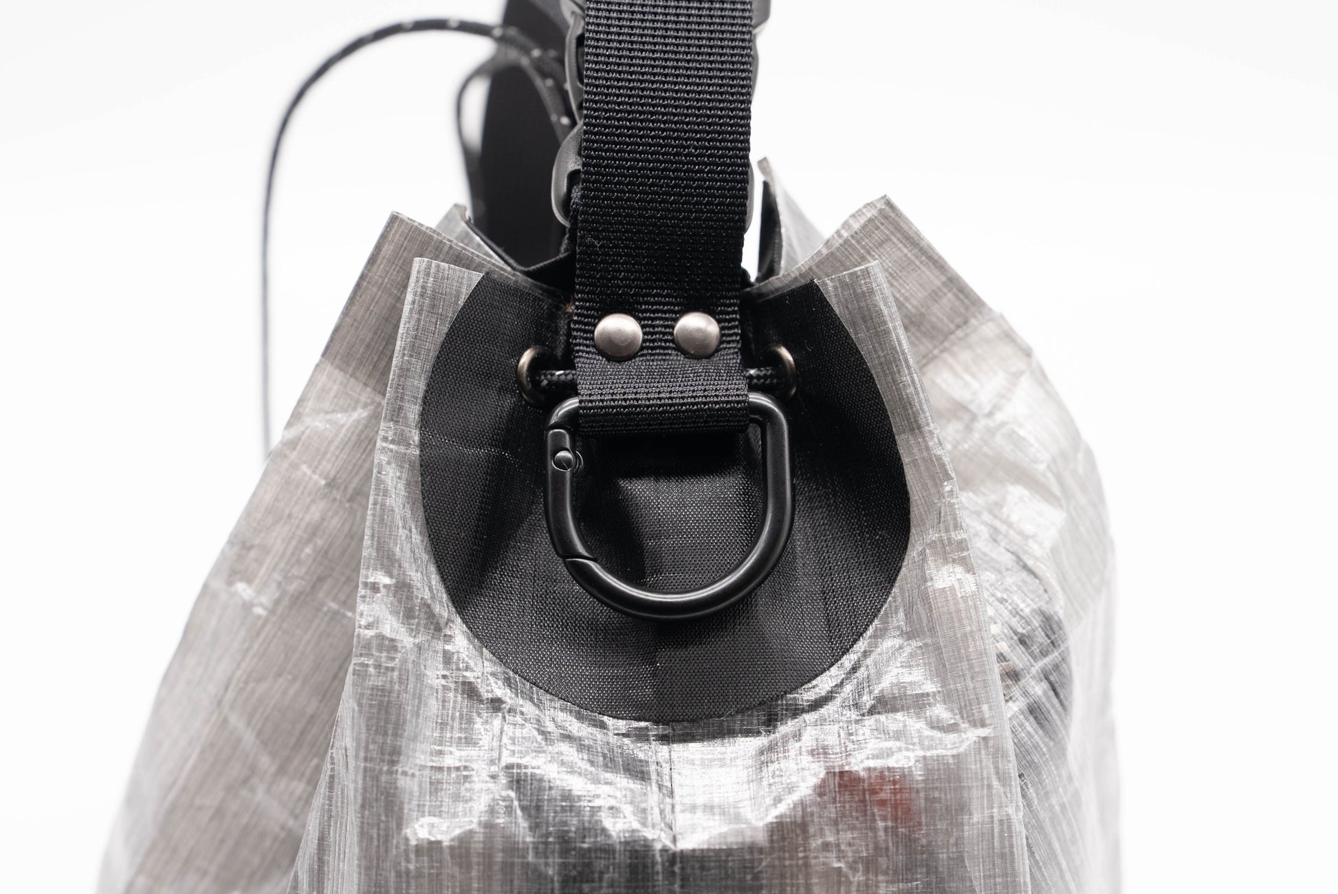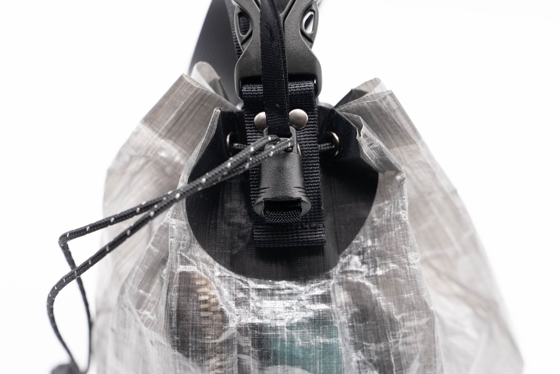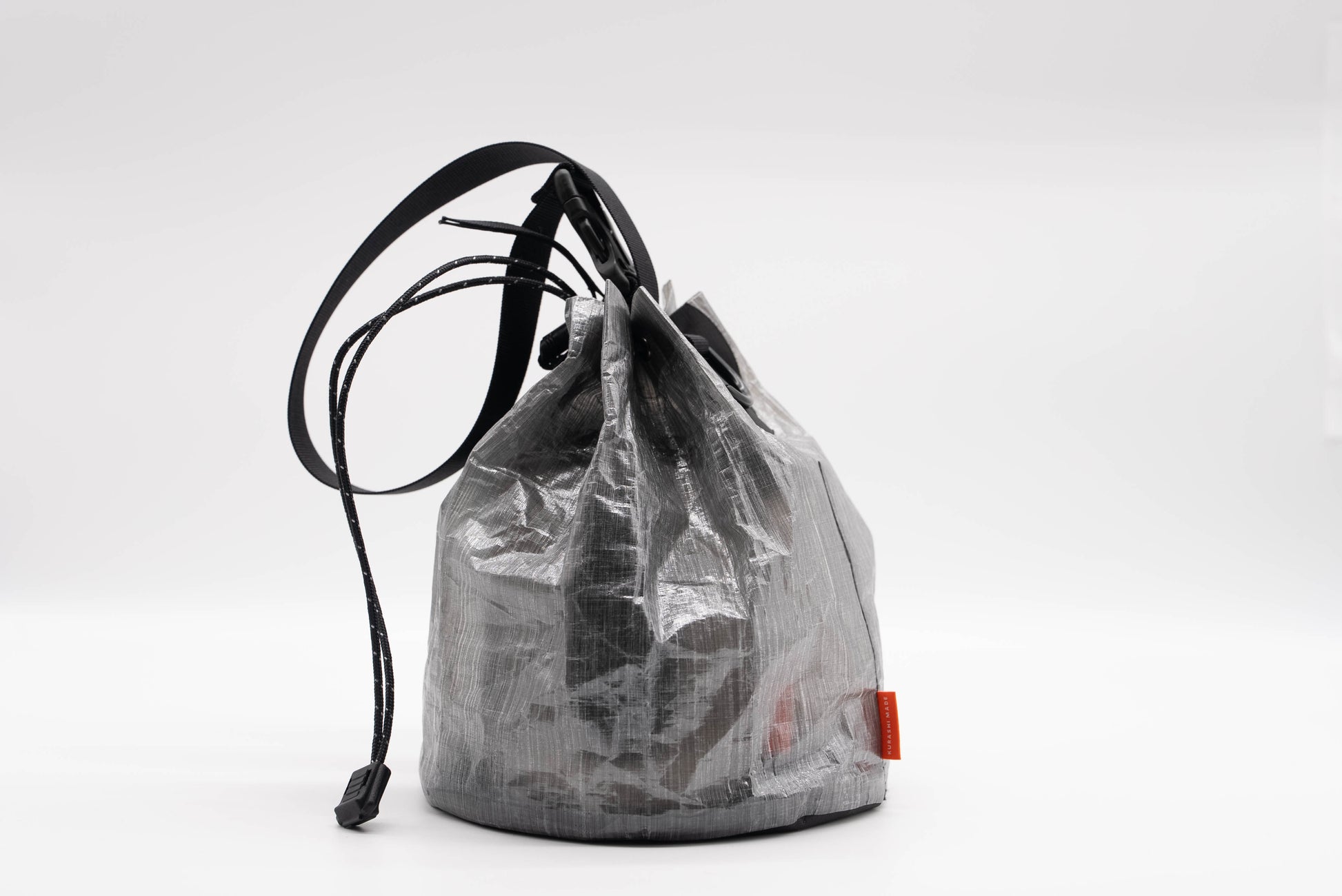 一般的な巾着バッグに、アウトドアならではのワンアクションパーツを採用し仕上げたアイテム。